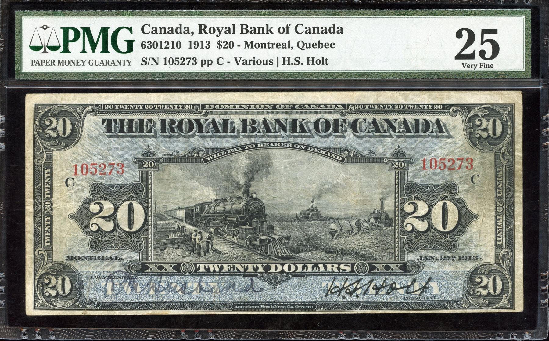 CH 630-12-10. PMG VF25. Famous Canadian note with train zooming through the Prairies. S/N: 105273/C.
