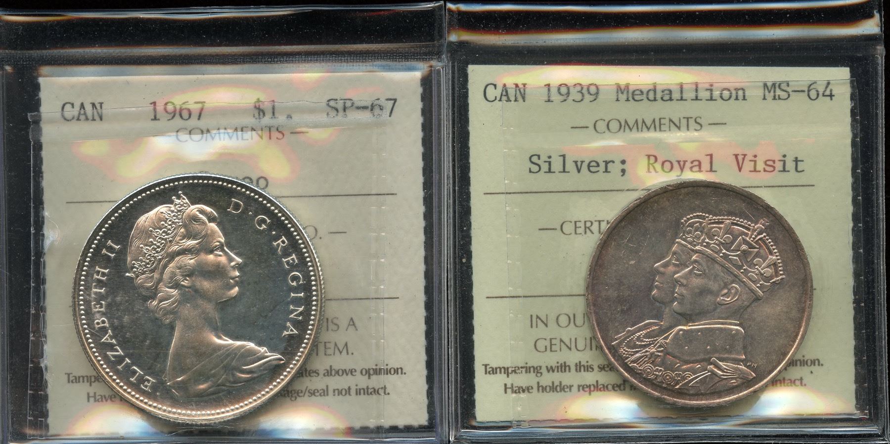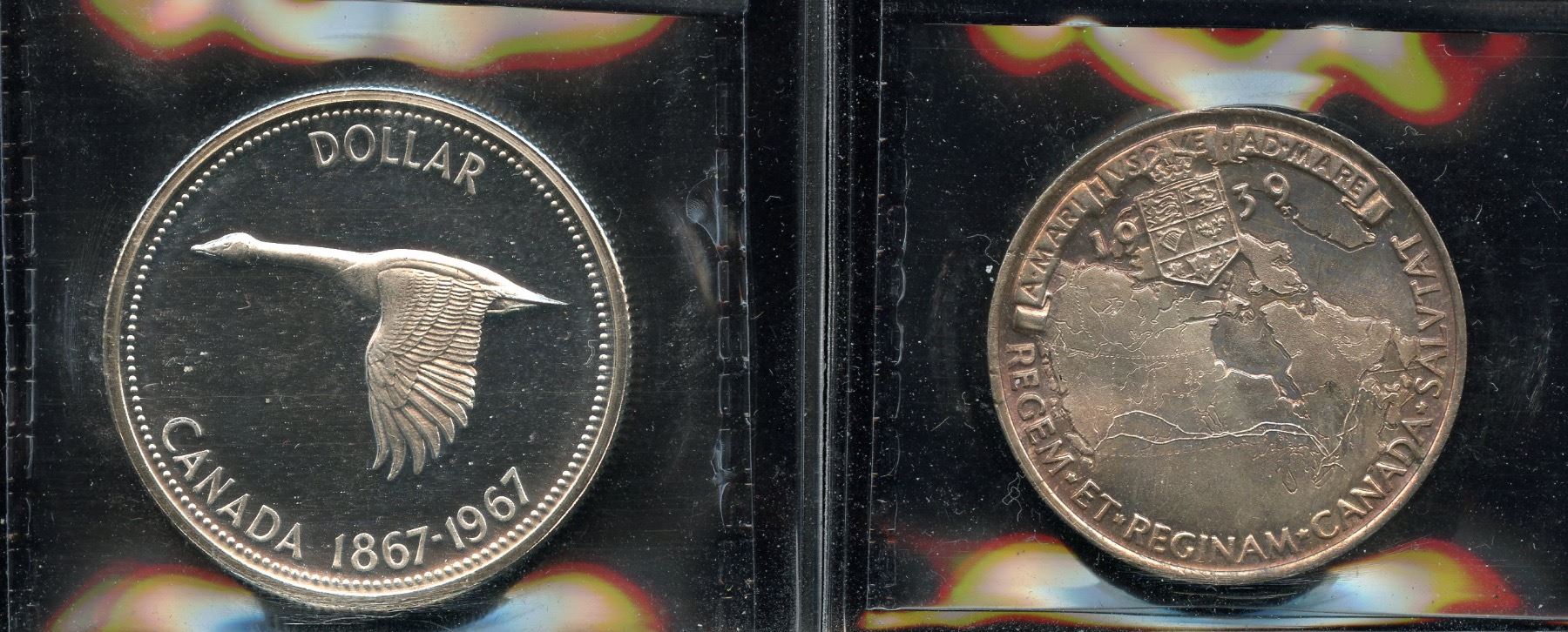 1967 Silver Dollar ICCS SP-67, cameo. 1939 Medallion MS-64, nicely toned. 2 Pcs.