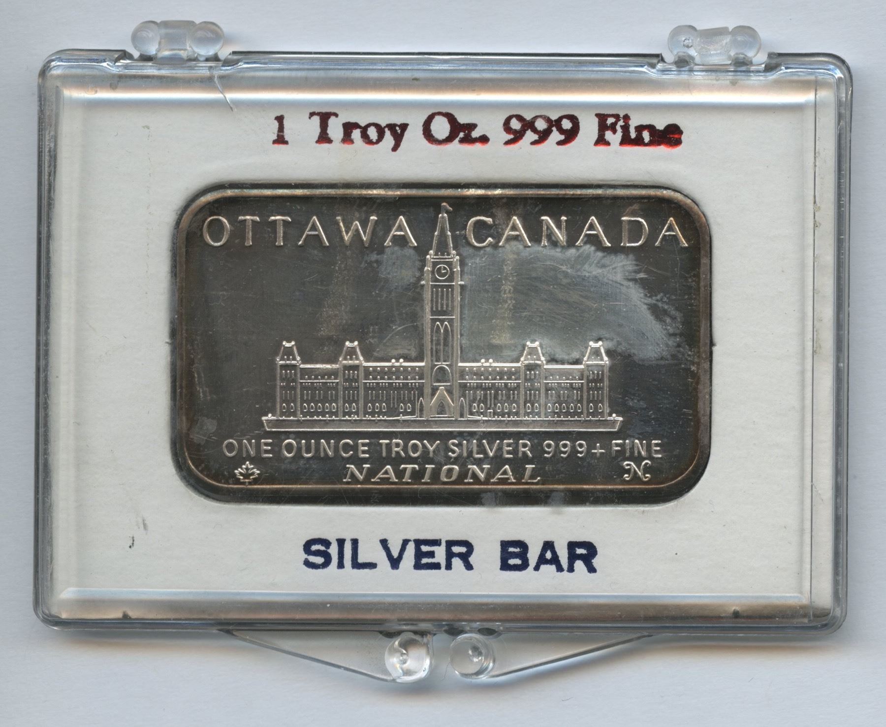 1 oz fine silver bar in display case.