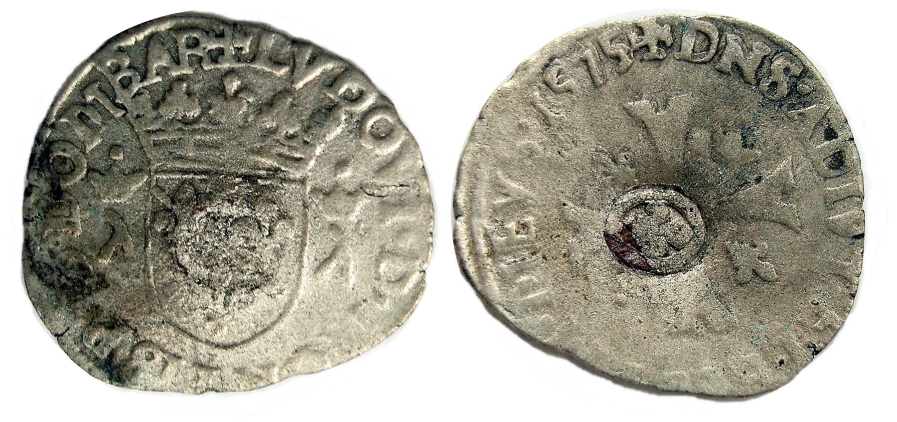 Host Coin of Dombes, Vlack Unlisted Type - 1640 countermark on 1575 [Treboux Mint] Dombes Douzain of Louis II de Bourbon-Montpensier, Divo Dombes 40. Very Fine, sharply struck, with minor clipping affecting the legends just at the base of the obverse and reverse, with the remainder of the legends bold, including the date – which is the earliest Dombes coin known with a 1640 countermark. While similar in overall design to French douzains, the Dombes issues were privately struck, with different legends and, as seen here, different letters flanking the obverse shield. Medium gray, the surfaces with a touch of roughness but not bad, the countermark applied at the center reverse. The various Dombes coinages were ably documented by Jean-Paul Divo in 2004 and traces the various coinages of the region from 1470-1674 (though he unfortunately does not document any of the countermarked issues known). Louis de Bourbon was the second Duke of Montpensier, who had a long military career. Initially favorable to the Huguenot Protestants he later changed alliances and attacked them in order to curry royal favor, causing the military men under his command to dislike him. The Dombes area was under Bourbon control as early as 1400, but in 1523 Francois I accused the Duke of crimes and seized the land and titles; it was returned to the Bourbons in 1561. The area was not incorporated into the kingdom of France until 1765 under Louis XV. As a feudal area it had the right to strike its own coinage; most of this coinage was in direct imitation of the styles of French coins issued at the same time, with legends and busts (if used) changed to reflect the Bourbon issuers. As host coins for 1640 countermarks the Dombes issues are rare enough to have not been noticed at all by Breen or Vlack (though the type was later called “Vlack 1q” after his book was released); this is the earliest Dombes douzain known with a 1640 countermark, and we know of just one other on a (later) Louis II de Bourbon coin. There were over 100 different douzain types issued in the two centuries of Dombes coinage, but only a handful have been found with the 1640 countermark, and the present offering has seven different dates, issued under three different rulers, a phenomenal offering.