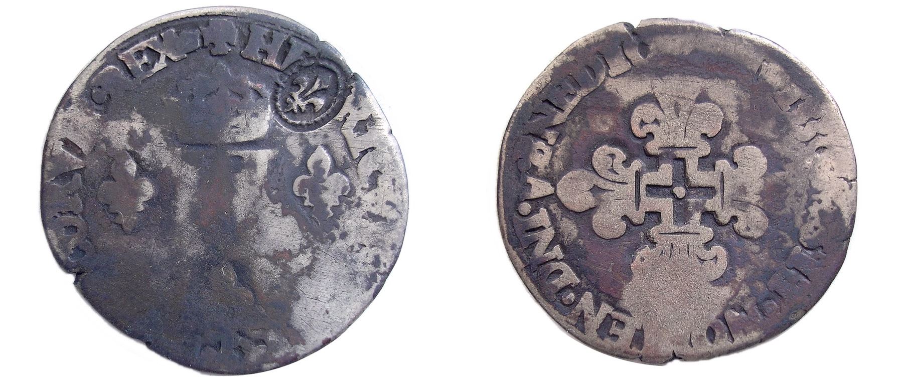 Host Coin of Henri II (ruled 1547-1559), Vlack 1g Type - 1640 countermark on a 1550-A [Paris Mint] Henri II Double Sol Parisis or Gros de Six Blancs, Ciani 1301, Duplessy 994, Sombart 4456. Very Good to Fine, a fascinating example, struck on a one-year type coin (which itself was only struck at the Paris Mint). The host coin is twice the weight of the sol denomination, and a bit more than double the weight of the douzain types usually found as a host coin for the 1640 countermarks – and they were worth twice as much as a regular sol in circulation. The fleur-de-lys countermark on this issue raised its value from 30 Deniers (i.e. double the value of a Sol of 15 Deniers) to 36 Deniers. This larger denomination was completely unknown to Vlack, as well as Breen and other earlier North American researchers, though countermarked examples of the Double Sol Parisis are also now known for Charles IX and Henri IIII as well – though all are quite rare (and with only one date and mintmark known for the Henri II issues they are likely rarer still with the 1640 countermark). This would have been the largest billon coin in circulation in France or French North America at the time, and since the colonies seldom saw silver or gold, it would perhaps have been the highest value coin in circulation in Canada at the time.