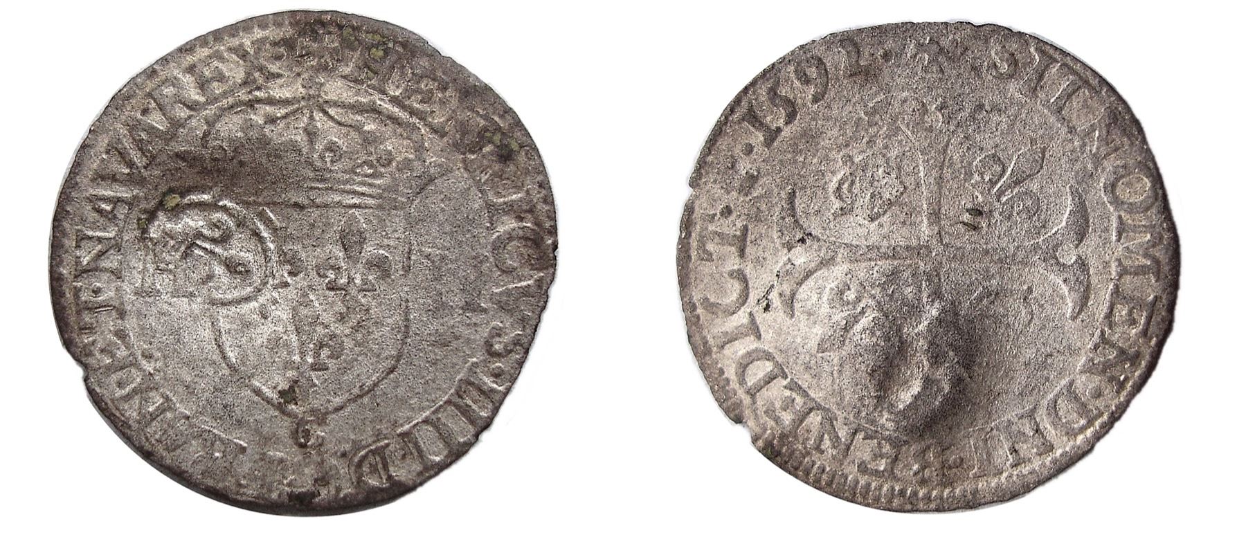 1640 countermark on a 1592-C [St-Lo Mint] Henri IV Douzain aux Deux H, 2nd type, Ciani 1563, Duples