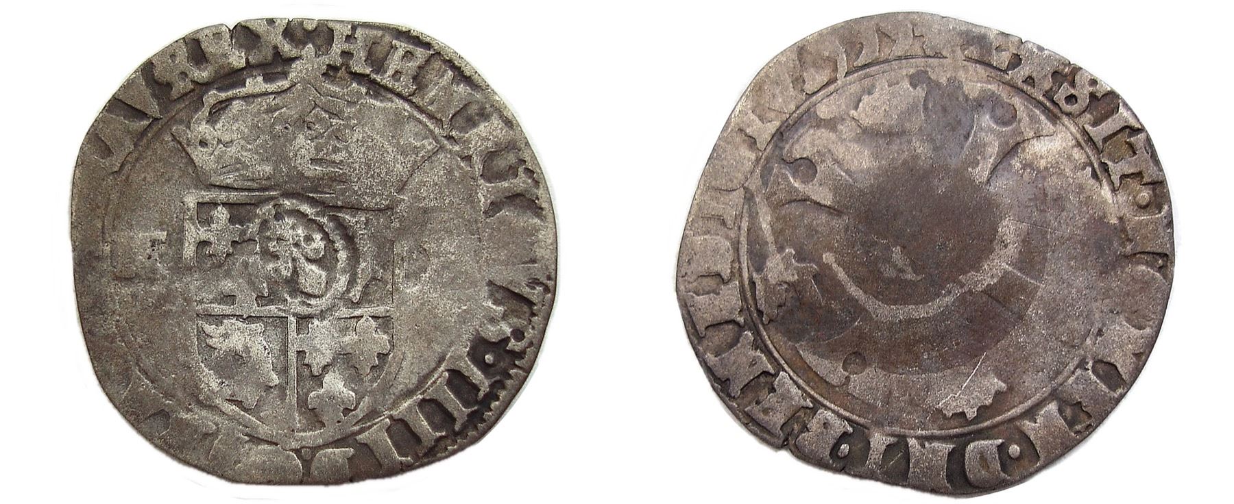 Host Coin of Henri IV (ruled 1590-1610), Vlack 1k Type - 1640 countermark on a 1594-Z [Grenoble Mint] Henri IV Douzain du Dauphine, 2nd type, Ciani 1564, Duplessy 1257, Sombart 4442. Very Fine, nicely struck, the legends mostly full, sharp save an area at the left obverse where the planchet was clipped. Nice design detail, showing most of the dolphins in the obverse shield (one obscured by the countermark there) and in the fields formed by the reverse cross. Medium silver gray, clean and nice eye appeal. This type was only struck at this mint, and only from 1593-7 – but despite this limited output the host coins are relatively available today; still, it is a distinct type within the series, and popular as such.