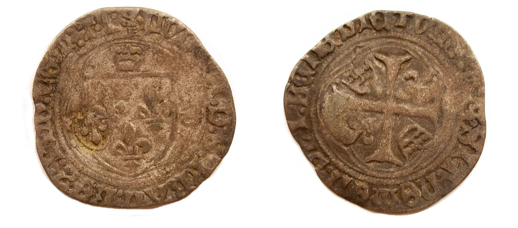 Host Coins of Louis XII (ruled 1497-1515), Vlack 1e Type - 1640 countermark on a Louis XII Blanc aux Couronelles, Ciani 928, Duplessy 664. Authorized 1498, apparently struck at the Tarascon Mint, which is unreported if so. Very Fine, central details sharp, the legends nearly full on either side as the piece is on a larger planchet than the one in the previous lot. The countermark is on the obverse, overlapping the fleur-de-lys in the shield. Nicely toned antique silver with excellent eye appeal. An extremely rare issue, unknown to Vlack, this example will prove difficult to improve upon.