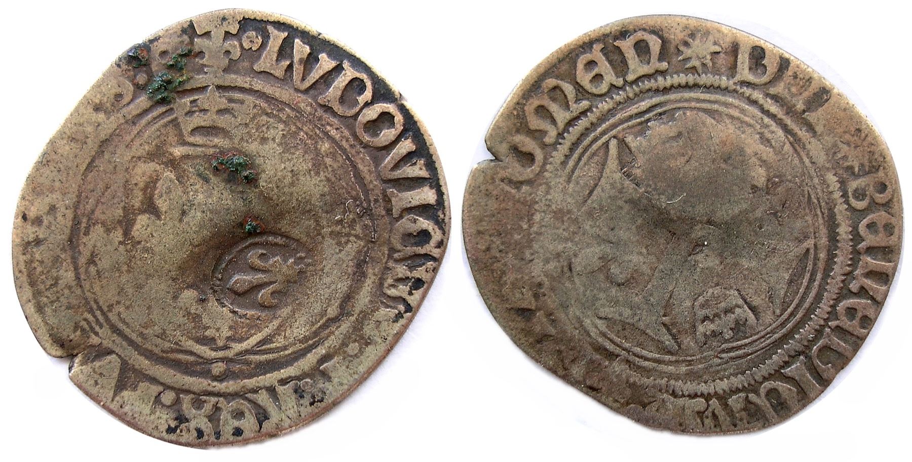 Host Coin of Louis XII (ruled 1497-1515), Vlack 1e Type - 1640 countermark on a Louis XII Douzain de Provence, Ciani 931B, Duplessy 668. Second type, struck at the Tarascon Mint. Fine to Very Fine, a bit weaker at the left obverse periphery, stronger at the right, the design details weaker than the legends, but all visible. The legends are strongest right where you want them to be, with LVDOVI (for Louis) bold. Any type of host coin for this ruler was unknown to Vlack, this particular type from Provence likely with a much smaller mintage, and the number surviving with a 1640 countermark must be few indeed.