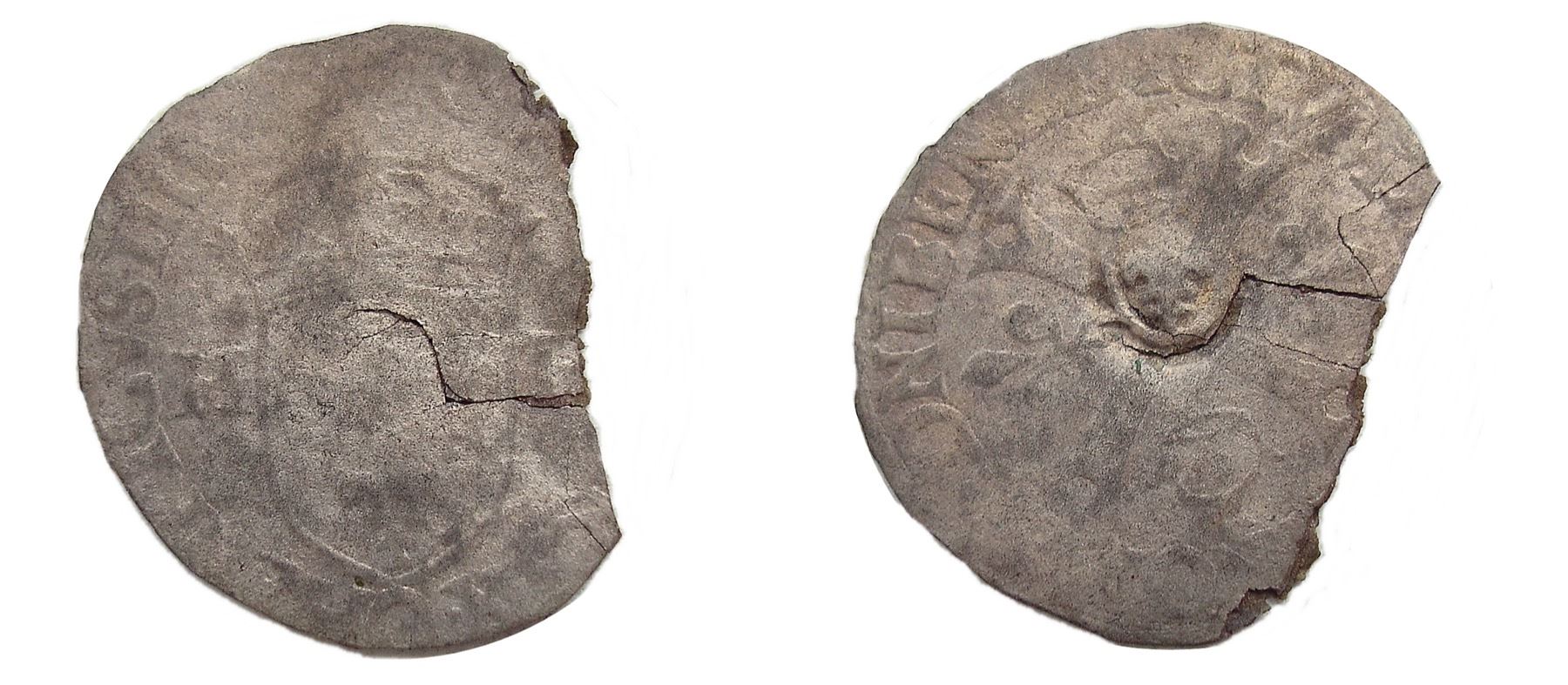 Host Coin of Henri IV (ruled 1590-1610), Vlack 1k Type - Host Coin of Henri IV (ruled 1590-1610), Vlack 1k Type-1640 countermark on an unknown date with 0 and dot mintmark [Clermont Mint] Douzain aux Deux H Couronnes, 3rd type, Ciani 1562, Duplessy 1254, Sombart 4436. Fine or nearly there, really an impossible coin to grade since it is struck on a wafer-thin and poorly made planchet, incorrectly annealed and resulting in the right quarter of the piece breaking off, likely prior to or during the striking process; the broken area taking the last two digits of the date, though Clermont struck this type from 1591-4 only (and its distinct mintmark of a dot within a circle is visible). Both sides of the piece show planchet cracks from the improper annealing process, and the piece could easily be snapped into several pieces! The countermark, which is genuine, is lightly impressed on the reverse – whoever stamped it likely worried that if he struck it too hard the coin would shatter! An interesting and rare error within the 1640 countermarked series!