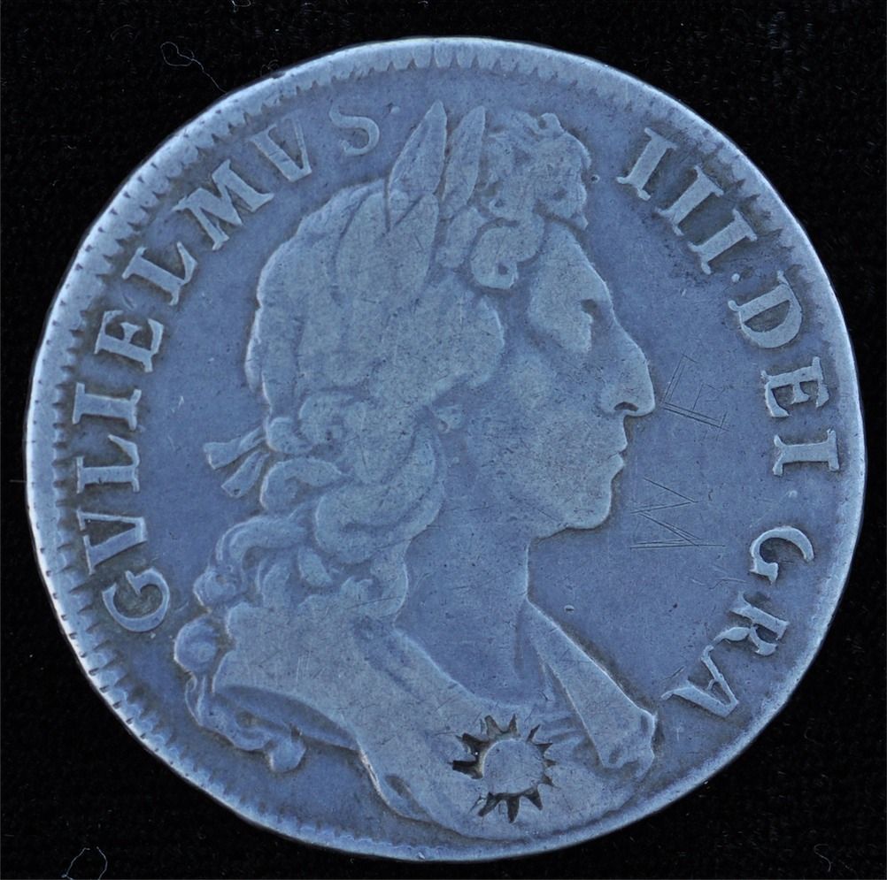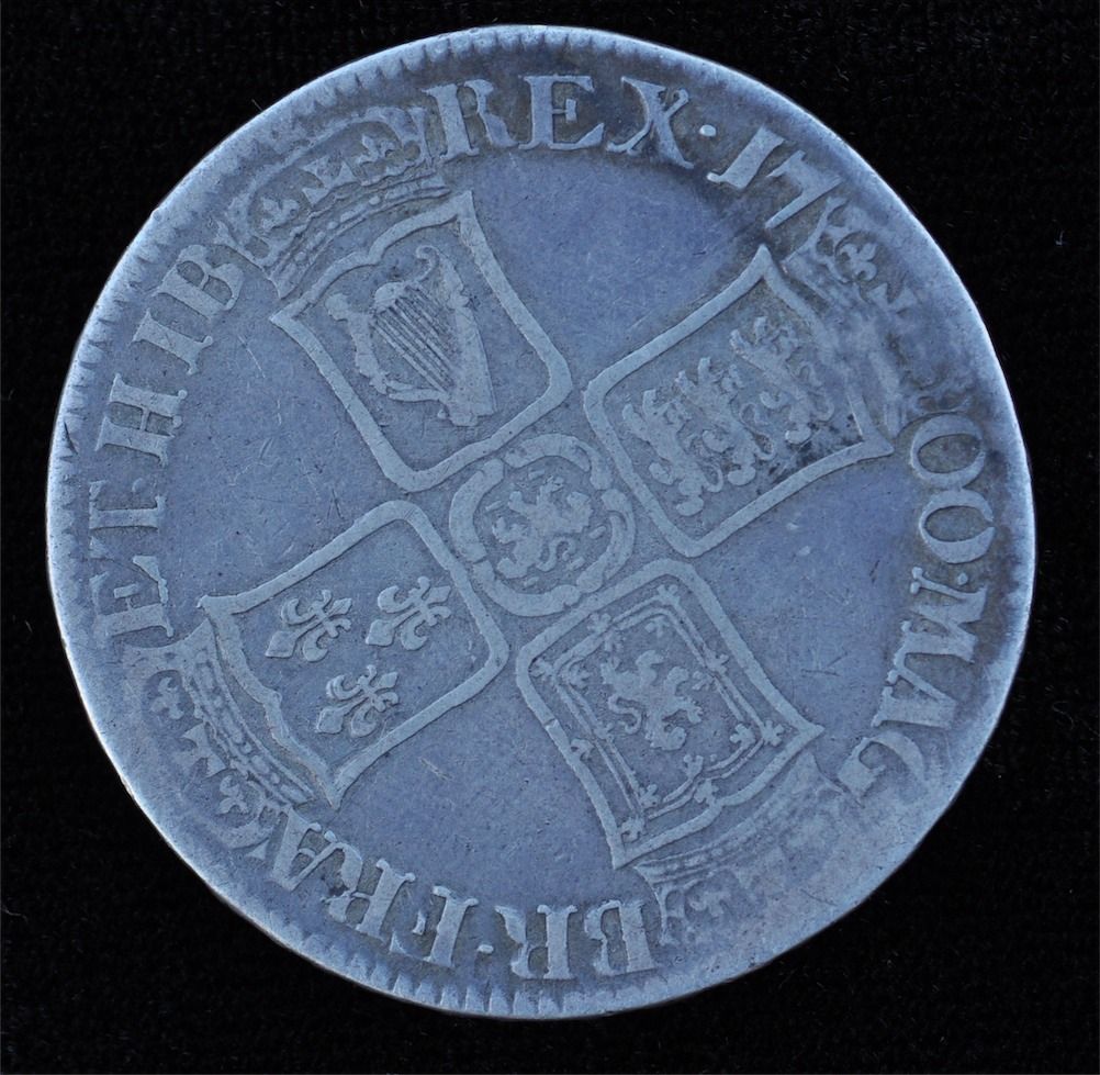 1700 British Crown - With Counter Stamp. Although this is an example of a random C/S, it is especially interesting as it is very similar to the one found on the PEI Holey Dollar (Lot 491).