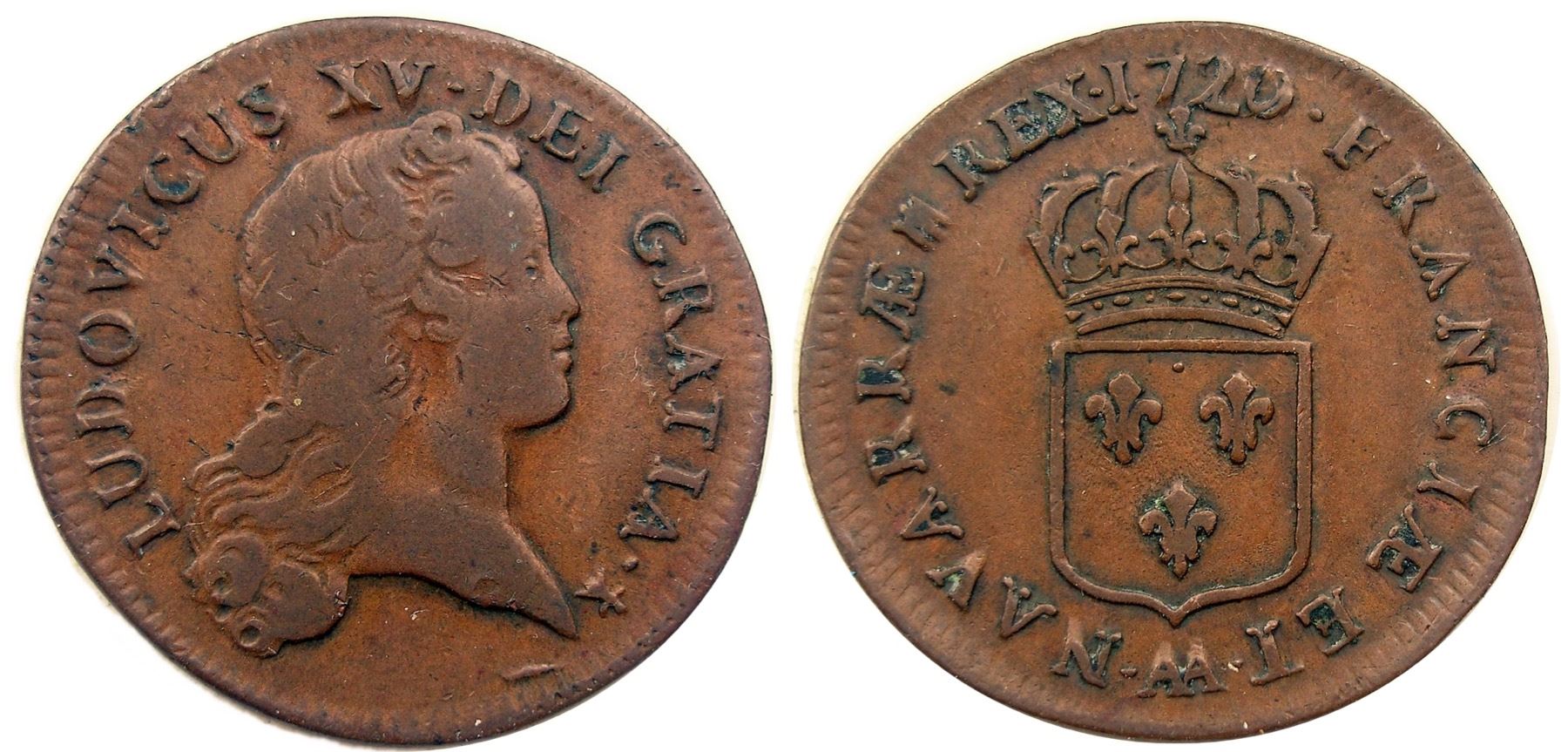1720/19-AA [Metz Mint] John Law Sol. Choice Extremely Fine, somewhat flat at the center of the obverse, but choice in every respect, quite unusual for the series, and especially so for this perhaps unique piece! Gorgeous light brown, the surfaces hard and pleasing. The legends are full, the overdate plainly visible to the naked eye, and though it is quite strong it is unlisted in any reference work. Even more amazing, the planchet is an extremely large 32 mm – a size that was known ONLY for some 1719-dated Metz Sols (one is offered earlier), but completely unknown for any dated 1720. In effect this piece is two unlisted types in one, as it is the only known overdate and the only known large planchet for the date. We have not seen another example, and it may well be unique. Both dies used on this coin are different from those used on the 1719-dated piece on the same large planchet offered earlier, which is interesting. This is the exact coin plated in Rock’s article on overdates, and is the only example noted in Smith’s census of 262 different Sols! For the specialist this is a coin that rings all the bells – choice, extremely rare (or unique), and dramatically different in appearance due to the extremely large planchet. We expect keen competition for this lot.