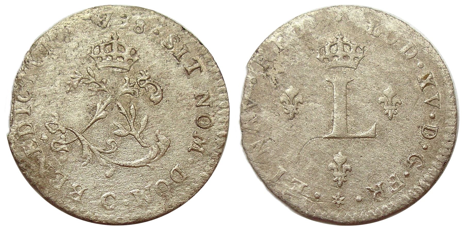 C- Caen Mint - 1738-C Billon Sous Marques. Vlack 55. Rarity-8, a piece that was listed as NONE REPORTED in the Vlack book, and since discovered. Very Fine or so, the legends full on either side, the all-important date and mintmark both bold, the design details sharp on either side. Light silver, the planchet out of the round at the extreme left, likely the location of a lamination that broke away when the piece was struck; this touches none of the legend. A few light marks from circulation, including some thin reverse scratches. The condition of the coin is almost moot, since it is an extremely rare variety, a date that was unknown to the author of the book, though Caen did report minting slightly under 31,000 coins for the year – this mintage was a small fraction of the 1,580,526 coins it struck the following year, and this tiny mintage surely explains its rarity today (it was the lowest until 1752, the final year Caen struck the denomination, which is also listed as None Reported). Needless to say, there was none in the Vlack sale, or in the Ford collection – and we are aware of just one other specimen of the date, now in a large, private collection. Likely a chance that will not be soon repeated!