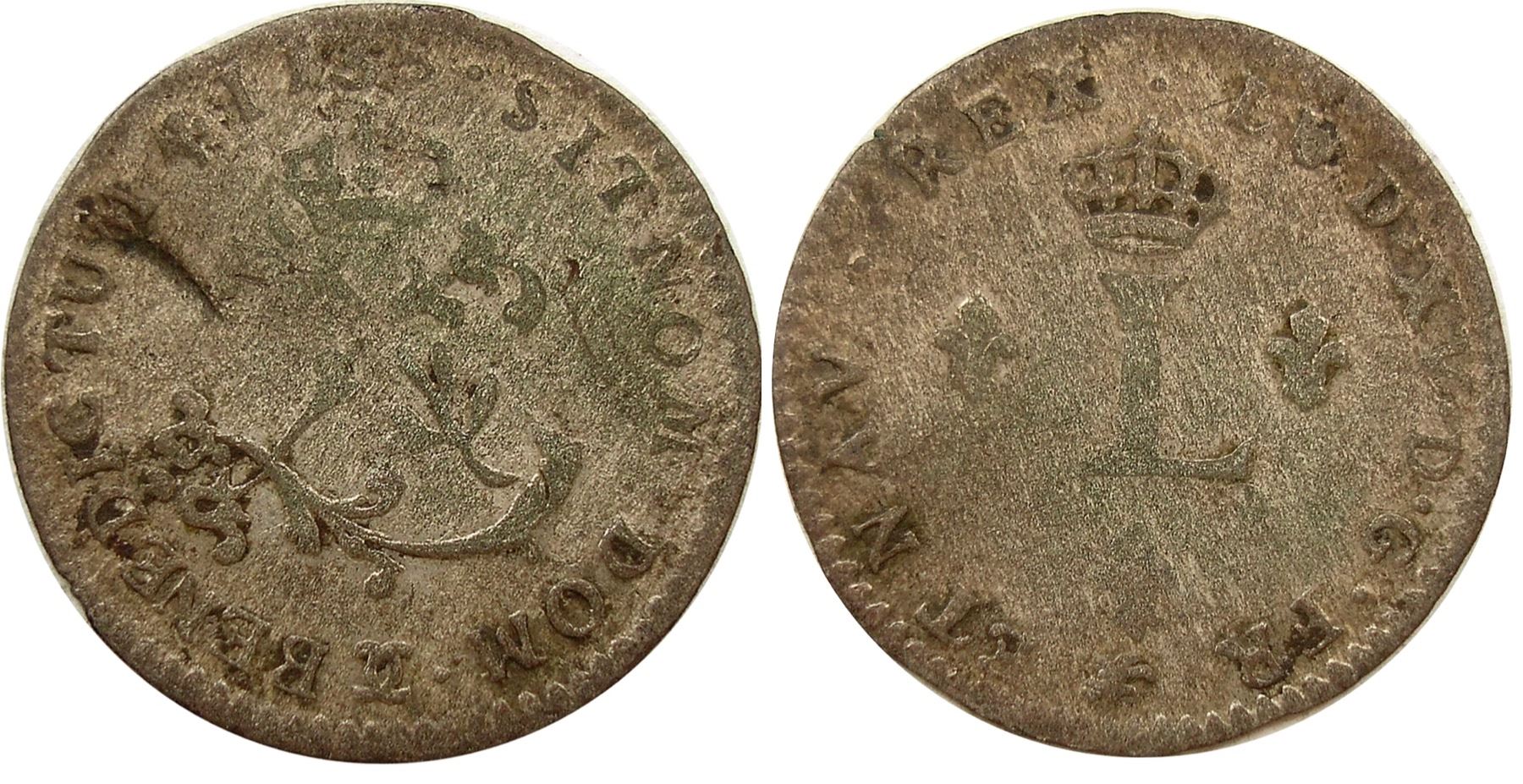 CC – Besancon Mint - 1738-CC Billon Sous Marques. Vlack 277. Rarity-8. Fine, the peripheries sharper than the centers, with the legends full on either side, the date a bit weak, the mintmark bold (the mintmark is known as addorsed C’s, the left one backwards, the right one facing normally, both interlocked; they have been traditionally written out as either “CC” which we prefer, or “)(“). The central designs are fully outlined, but not bold. Medium gold atop much of the original silvering, the surfaces lightly but evenly granular, a longish striation from the last letter of the obverse legend, but nicely free of major marks from circulation. Quite rare, Ford did not have an example of this date, while the Vlack coin was sharper but excessively rough and had been cleaned.