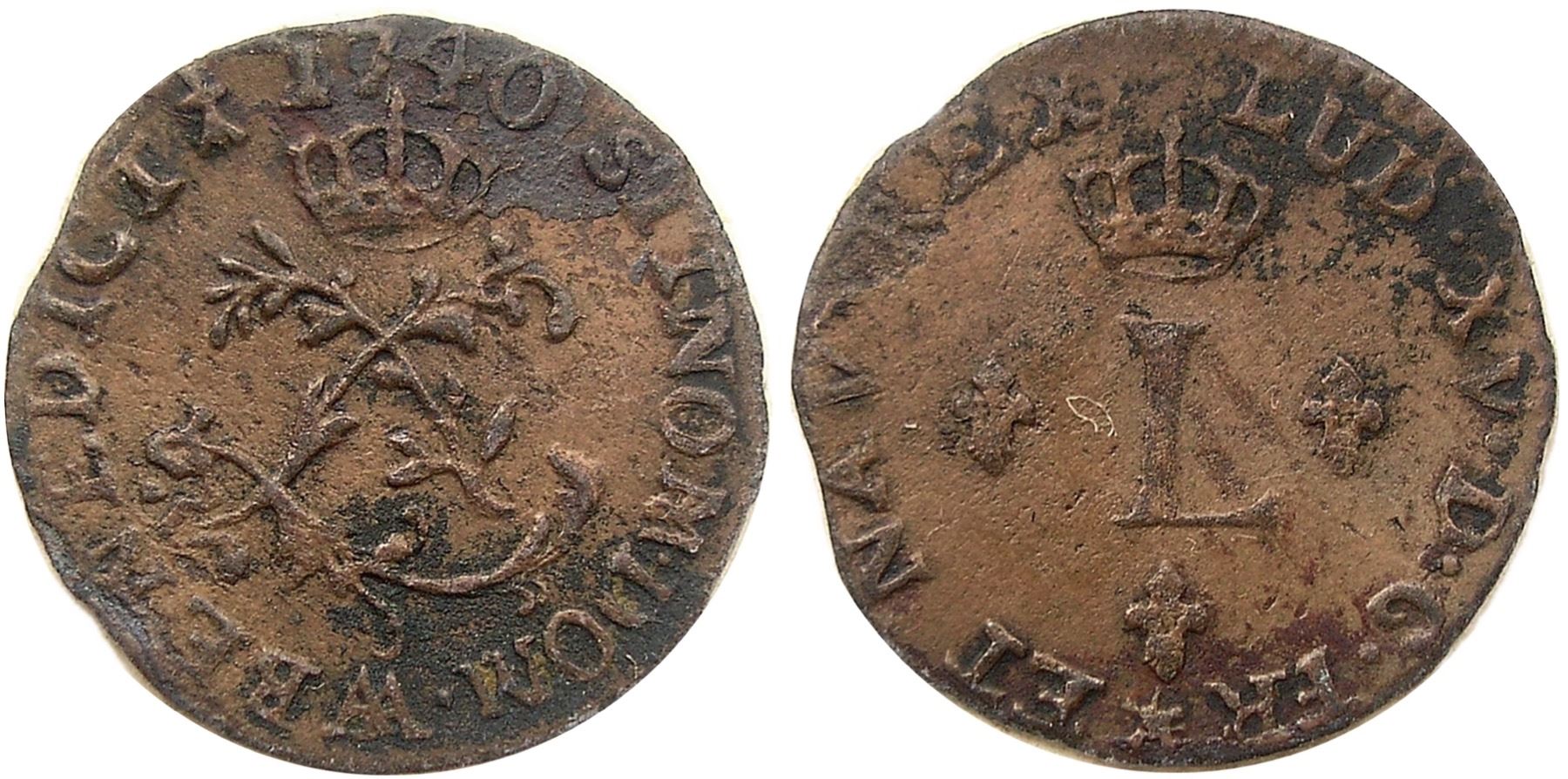 1740-AA [Metz Mint] Billon Half Sous Marques. Vlack 324. Rarity-1. This is one of the five examples of the type from the John Ford collection, and appeared as Lot 96 in the January, 2006 sale of his collection where it was described as “Extremely Fine. Dark gray, granular, probably slightly bent.” While we agree with the grade, the coin isn’t all that dark, nor very granular. Rather bold, the legends, date and mintmark are all full, the design detail strong. Certainly the most commonly seen Half Sous variety, though usually in grades of VF or less (the Vlack coin was called VF but was at least EF and possibly a full AU). Accompanied by the original lot ticket from the Ford auction, a chance for the collector to pick up an affordable example with this outstanding provenance.