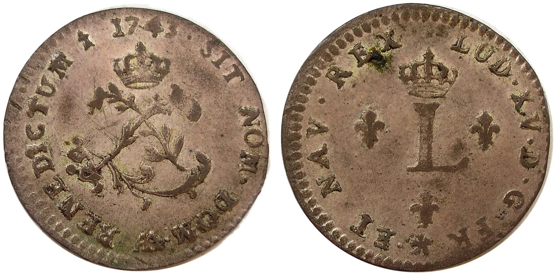 AA – Metz Mint - 1743-AA Billon Sous Marques. Vlack 241. Rarity-6. Extremely Fine. This is the Bob Vlack specimen, which appeared as Lot 5274 of the January, 2008 Stack’s sale of his collection, there described as “Extremely Fine. A scarce issue. This example is mostly pale silver in color. There are some light scratches and a touch of verdigris.” The silvering is full and lustrous, and the overall eye appeal is choice since the hairline scratches are confined to the center of the obverse and hidden in the design. One of just three varieties from this mint not given an R-7 or R-8 rating, but still quite difficult to find, and we note that Ford did not have an example.