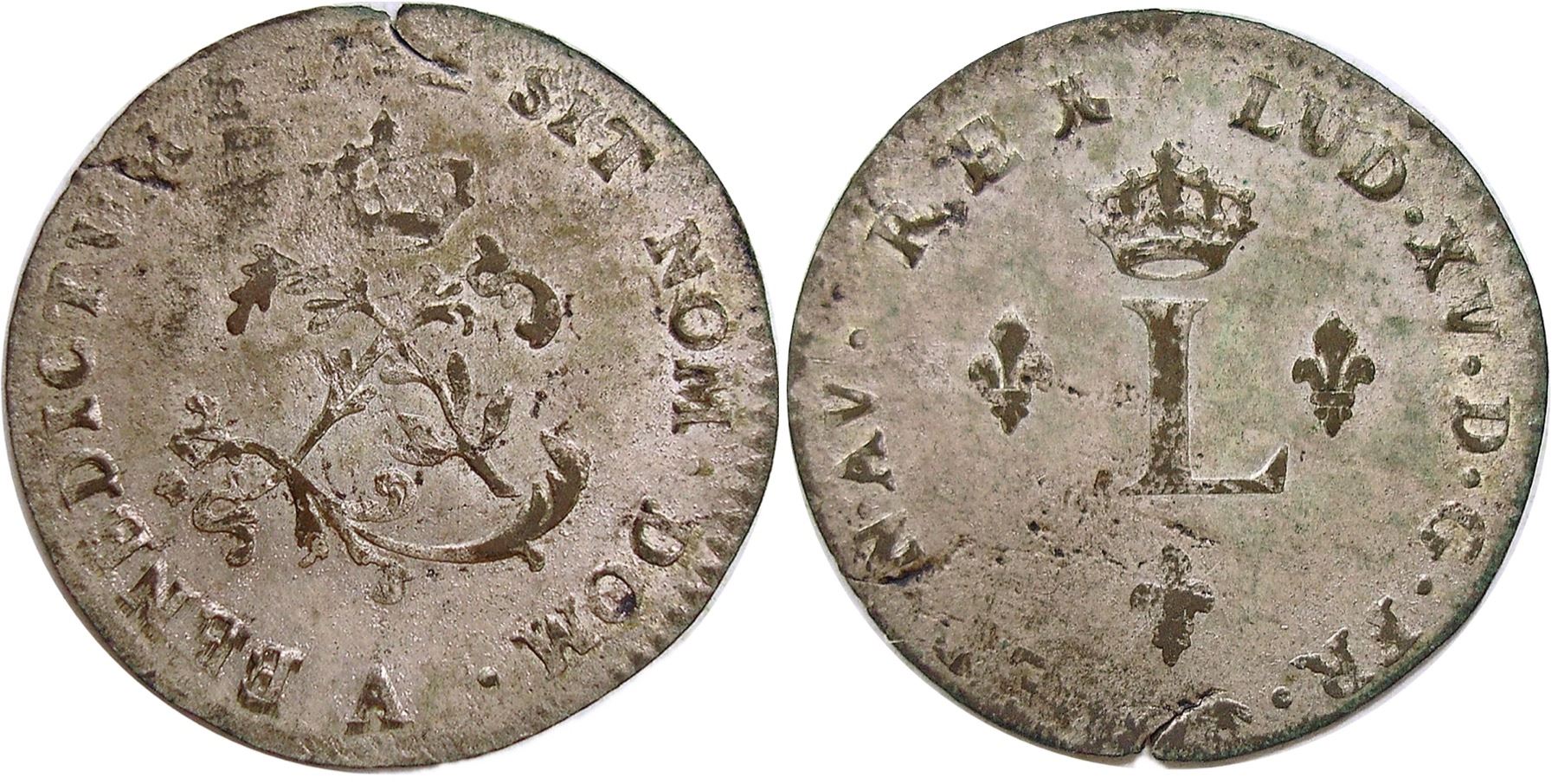 A - Paris Mint - 1752-A Billon Sous Marques. Vlack 32. Rarity-8. Choice About Uncirculated, somewhat weakly struck but on a planchet which retains nearly full, vibrant original silvering showing the true grade. The legends are full, save the T of ET on the reverse which is partially visible; the date and reverse different weaker but visible as they are struck in the area of a small planchet edge crack. A few light striae on either side. As mentioned, the surfaces are nearly full original silver, with very light rub on the high points of either side, the color quite choice. In cataloguing the Ford specimen, Michael Hodder noted that this is “one of the rarest of all the Paris Mint dates of this denomination.” That piece was graded VF, but was probably a full EF, with heavy reverse striations and brought $1,610 in spirited bidding.