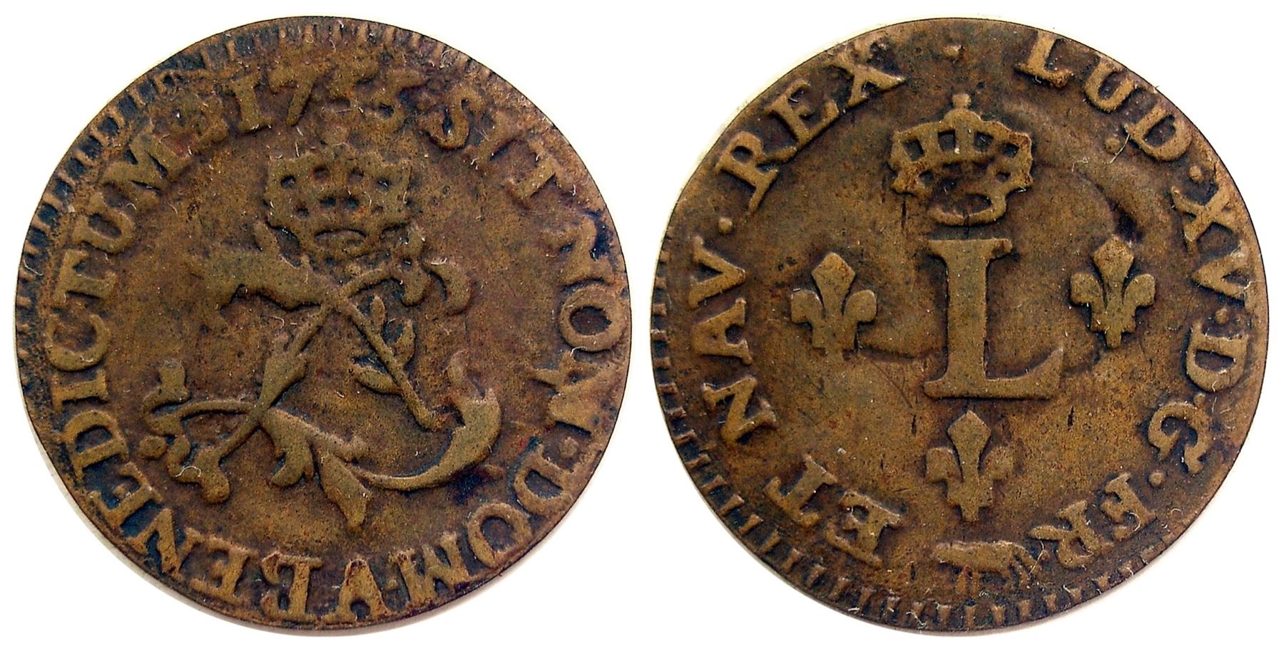 A - Paris Mint - 1755-A Billon Sous Marques. Vlack 350. Rarity-1. Very Fine, a contemporary counterfeit issue struck in copper, with no trace of silvering on either side (the variety is also known on fully silvered planchets). This is the most commonly-seen of the Sous Marques issues, and by far the most common of the varieties bearing this date – this is interesting because it suggests that the counterfeiters were able to strike more coins from a single die pair than the Paris mint often could! Light brown, the surfaces with a few scattered marks from circulation, but overall attractive. This example came from the Walter Breen collection, and is accompanied by his envelope – a rare pedigree, as Breen didn’t actually collect many coins, though he did have an affinity for this series, and while they were inexpensive he put together a nice little set of rarer date and mintmark combinations, as well as unusual counterfeits such as this.