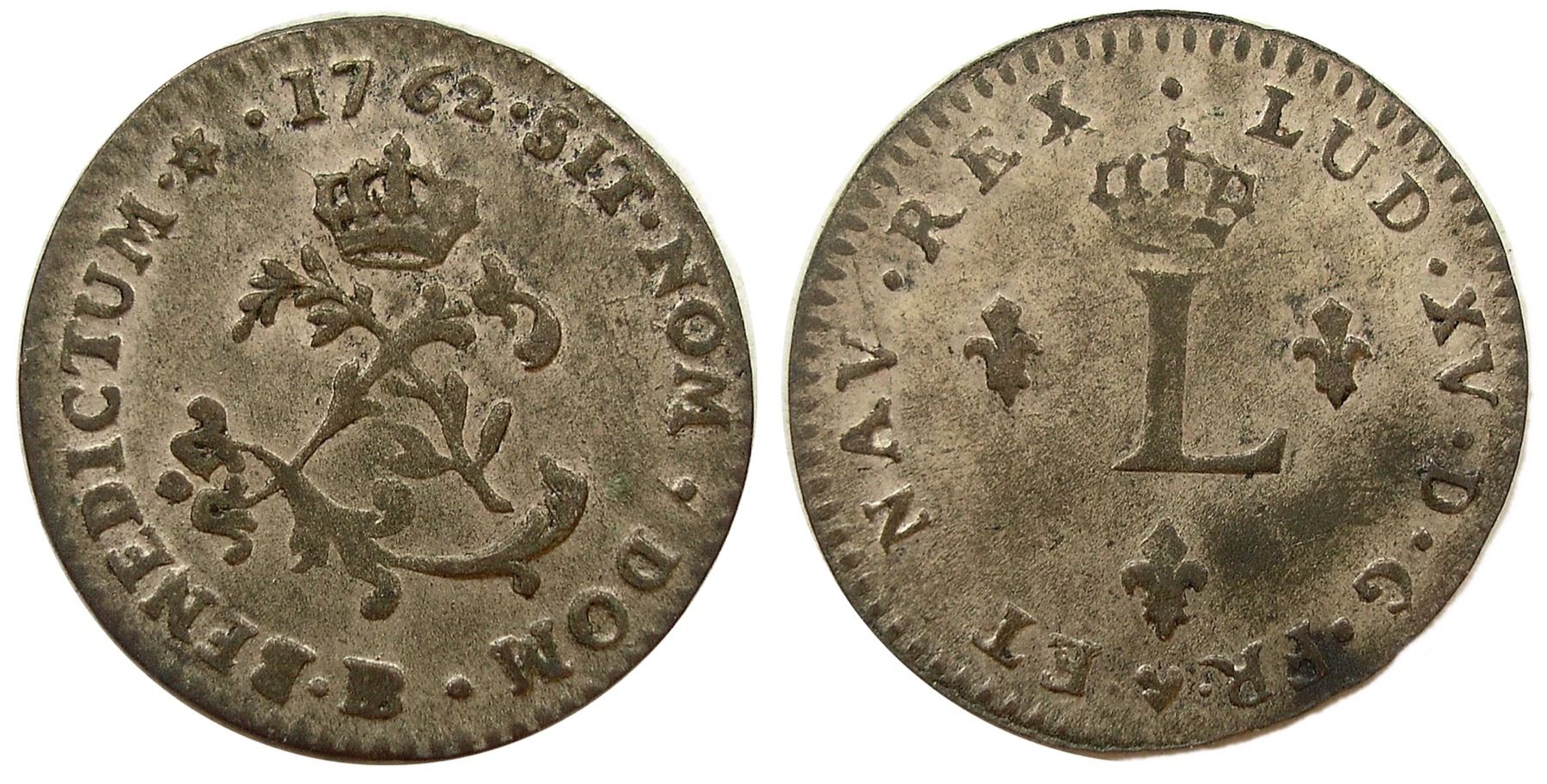 BB – Strasbourg Mint - 1762-BB Billon Sous Marques. Vlack 276. Rarity-1. Choice About Uncirculated, a very pleasing example of this final year of issue from the Strasbourg Mint. Boldly impressed, the legends sharp on either side, with all the letters bold; excellent design detail. Light silver starting to tone down, a small spot at the F of FR on the reverse, but no real marks from circulation, which make for a very attractive type coin. While not a rare variety (indeed, one of the most common of all the Sous), it is nice to see in choice grade, the present example with just the lightest rub on the high points which is likely due to storage in collector’s cabinets over the course of 200+ years.
