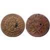 1767-A French Colonies Copper Sou. Vlack 14-E, another, but struck on a planchet with a PLAIN EDGE, quite rare as such. Nearly Very Fine, the obverse legend weak at SIT, the reverse weak at the last two letters of each line, the rest of the lettering and date strong. Deep golden brown, both sides a bit spotty with darker toning and a touch of verdigris. The 1767 Sous were struck with an engrailed edge as an anti-counterfeiting measure; we have seen a couple contemporary cast counterfeits in brass that lacked the edge, but have only seen a couple genuine struck coins missing this important feature, as here. An exceedingly rare error, and an important piece for the specialist.