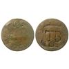 (1798) Tobago Countermark on an earlier Sous Marques. Vlack 441. Rarity-8 for variety, UNLISTED with an additional rosette countermark, purpose unknown. Fine, holed. Enough traces of the underlying Sous Marques can be seen around the peripheries to be sure of the host type, though the date or mintmark is not visible. Light olive, the surfaces clean for a well-used coin. The countermark was applied twice, most noticeable at the B where half of another B can be seen below it. There is a large hole, exactly where the “o” design would be below the TB, and this appears to have been purposely done in this spot. On the side opposite the TB countermark there is another countermark, a rosette that is at the base of where the later T mark is – its meaning unknown, but likely something that had relevance to the West Indies. This is an exceedingly rare type, with the TB countermark within a rectangular frame that loops itself at the bottom making a small “o” there. Vlack considers this the earliest of the Tobago countermarks, though the point could likely be argued – countermarks tended to go from crude to better in an effort to deal with counterfeiters, and the more ornate design seen on this mark would have been far more difficult to counterfeit than two simple letter punches – indeed, counterfeits of the various TB stamps are known, but none are known of this type within the rectangular frame. Part of Vlack’s claim is that this variety is the ONLY countermark that comes over earlier Sous Marques, and one would assume those host coins would be the first ones used – but see the following lot for something that contradicts this theory! It seems at least as likely that this countermark was the final one used in Tobago instead of the first – and maybe some intrepid researcher will be able to figure this out. Regardless, this is an exceedingly rare type that is almost never seen. Vlack had one, which brought US $6,325, one of the highest prices in the auction of his collection. This example is from the legendary Edward Roehrs sale, and was one of the prizes of that collection.