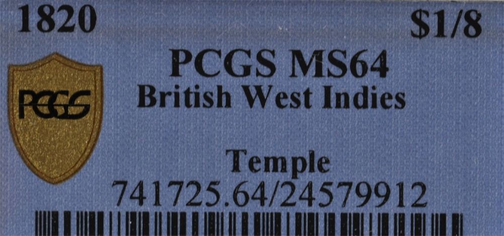 1820 British West Indies 1/8 Dollar Token - PCGS MS64, Ex:Temple.