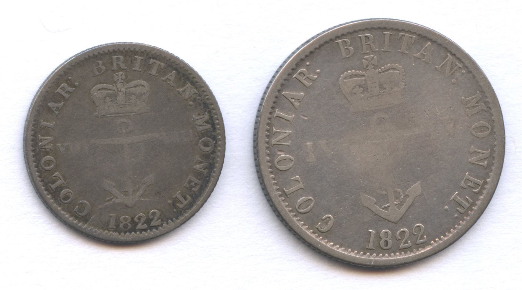 Br. 858, Anchor Money, ¼ dollar, 1822; Br. 859, Anchor Money, 1/8 dollar, 1820, silver. VG/Fine, 2 Pcs.