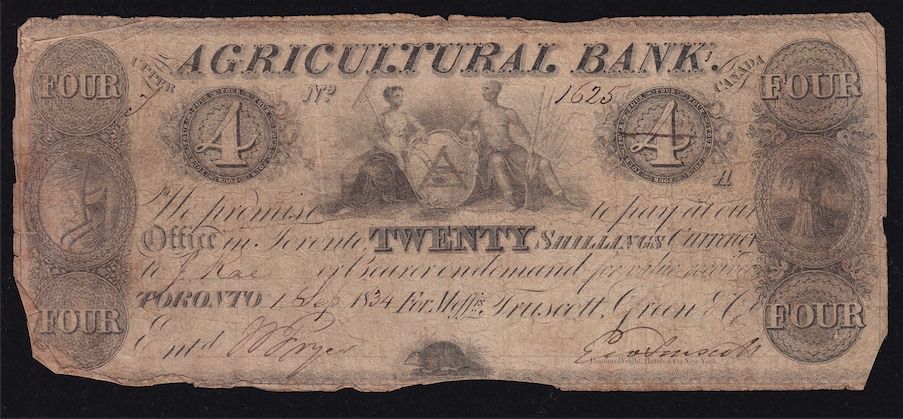 1834 Agriculture Bank $4. CH 20-10-14, VG, S/N:1625/A.