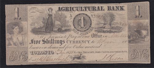 1835 Agricultural Bank One Dollar - CH 20-12-02-02. F/VF. S/N: 1509/A.