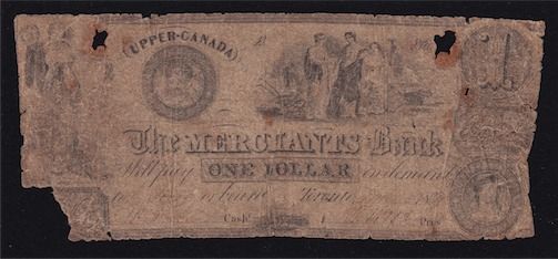 1837 Merchants Bank $1 - CH 450-10-02, AG with pieces missing, rust.