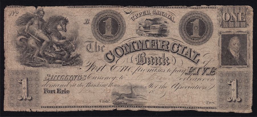 1837 The Commercial Bank $1. CH 160-10-02, Fort Erie, Good, serial number not legible.