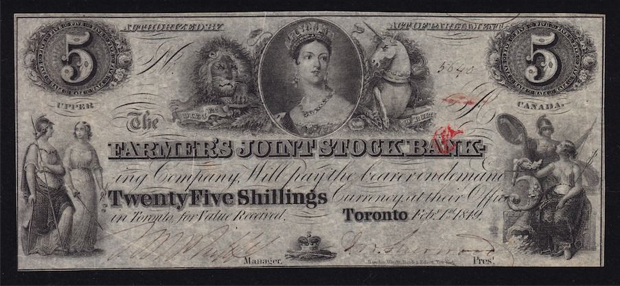 1849 Farmer's Joint Stock Bank $5. CH 280-12-06, EF, S/N:5640/A.
