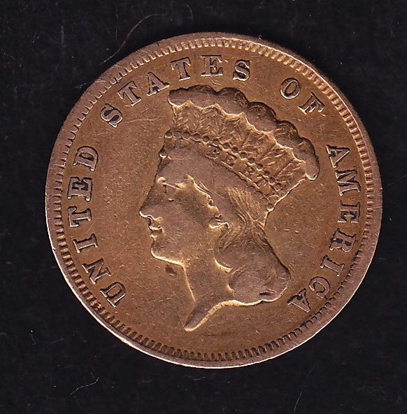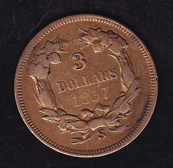 1857 US $3 Gold - VF.