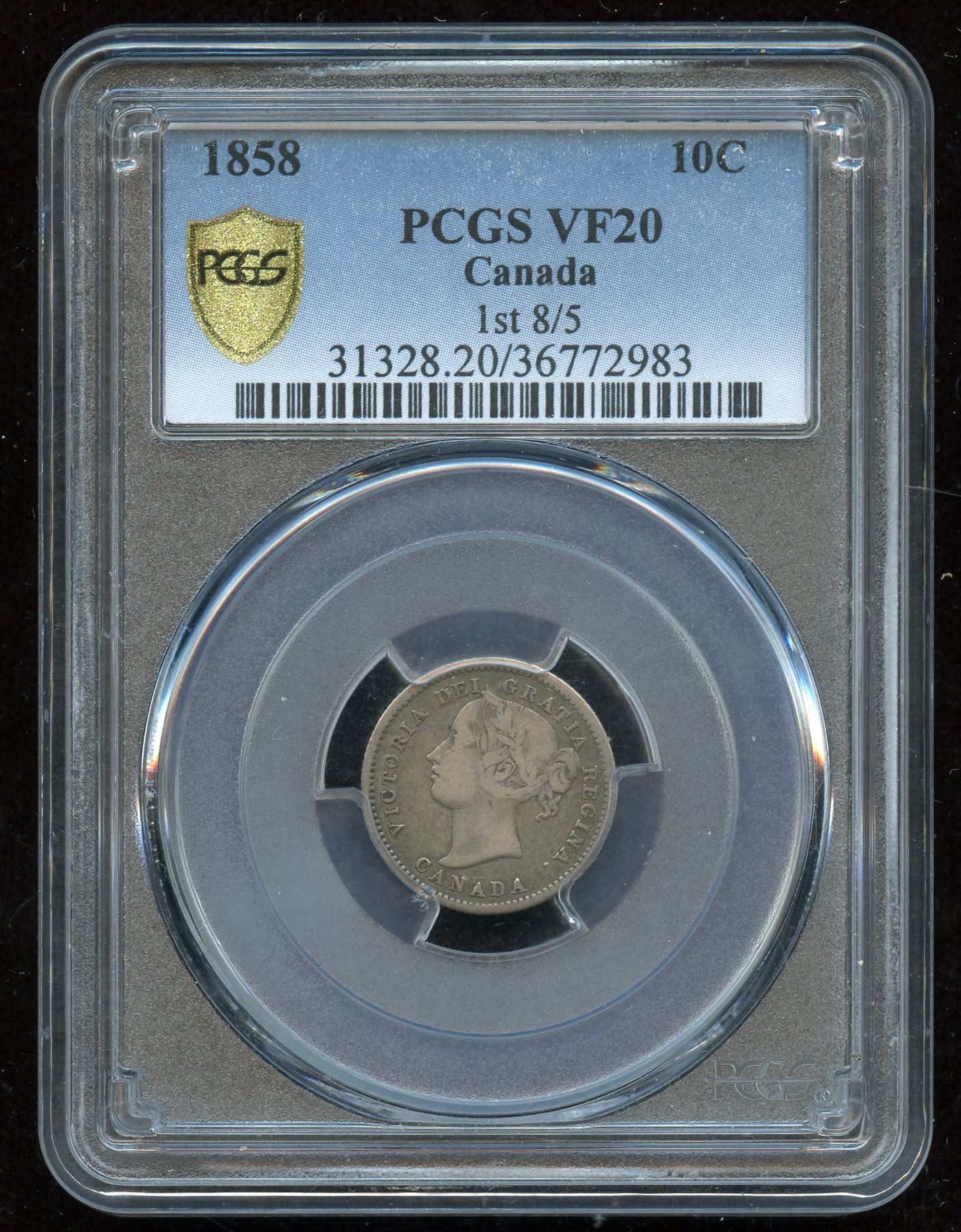 PCGS VF20. First 8 over 5 overdate variety. Notable both as the first date in the series and as a desirable overdate, coin shows average wear but a hint of lustre remains on the reverse. The overdate is clear, showing a distinct curve over the 8, in-line with the type used for the digit 5.