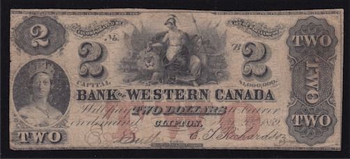 1859 Bank of Western Canada $2 - CH 795-10-08, Fine, S/N:838/B