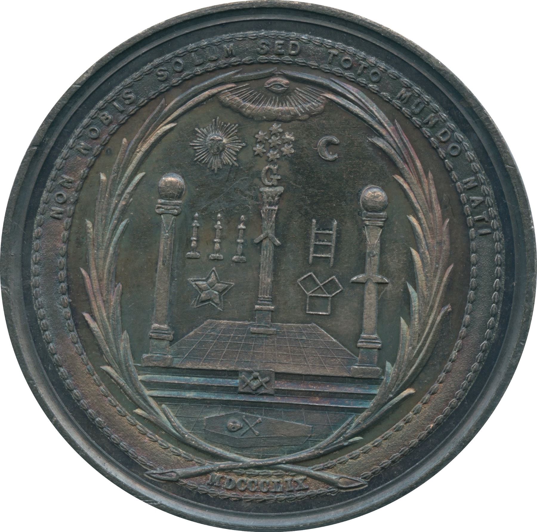Bronze, 50.5mm. Beautifully toned Unc. Struck for the Elisha Kind Kane Masonic Lodge in New York City.