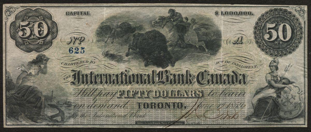 CH 380-12-06 VF condition. Few pin holes and a small stain. Gorgeous buffalo hunting scene. S/N 625/A. *