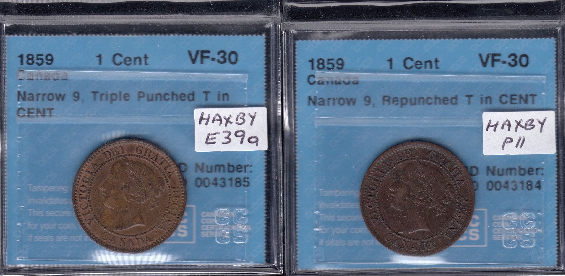 CCCS both VF-30. 2 types: T/T CENT (Haxby P11), T/T/T CENT (Haxby E39a). 2 Pcs.