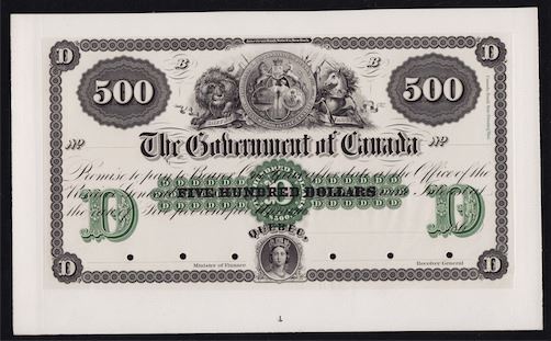As stated in Charlton "These were printed in preparation for a planned issue of interest-bearing government bonds". Last offered in 1990 by the American Bank Note Co. Archives Sale, were seven pieces were sold.