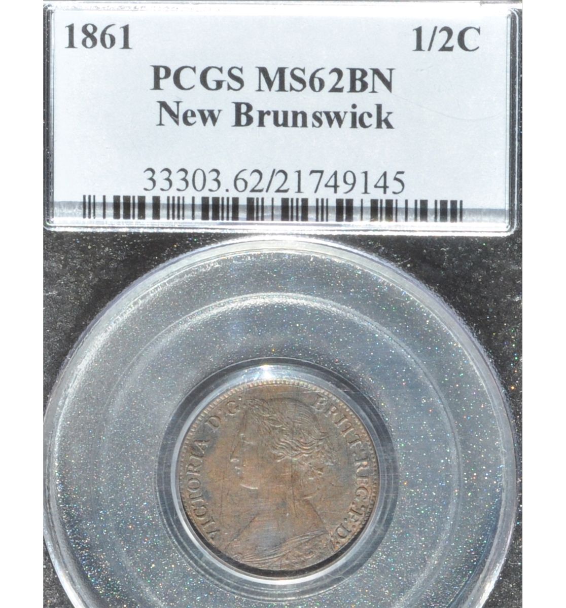 1861 New Brunswick ½ Cent - PCGS MS-62, Brown.