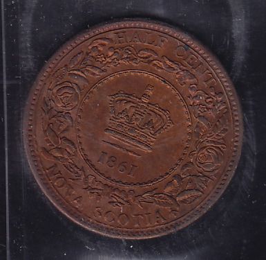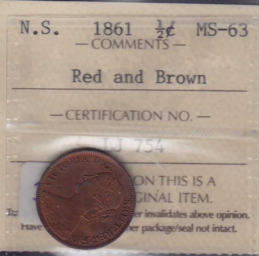 1861 Nova Scotia Half Cent - ICCS MS-63 Red and Brown.