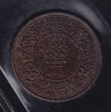 1861 Nova Scotia Half Cent. ICCS MS-60, Trace Red.