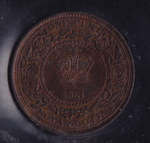 1861 Nova Scotia One Cent - ICCS MS-62 Large Bud, Trace Red.