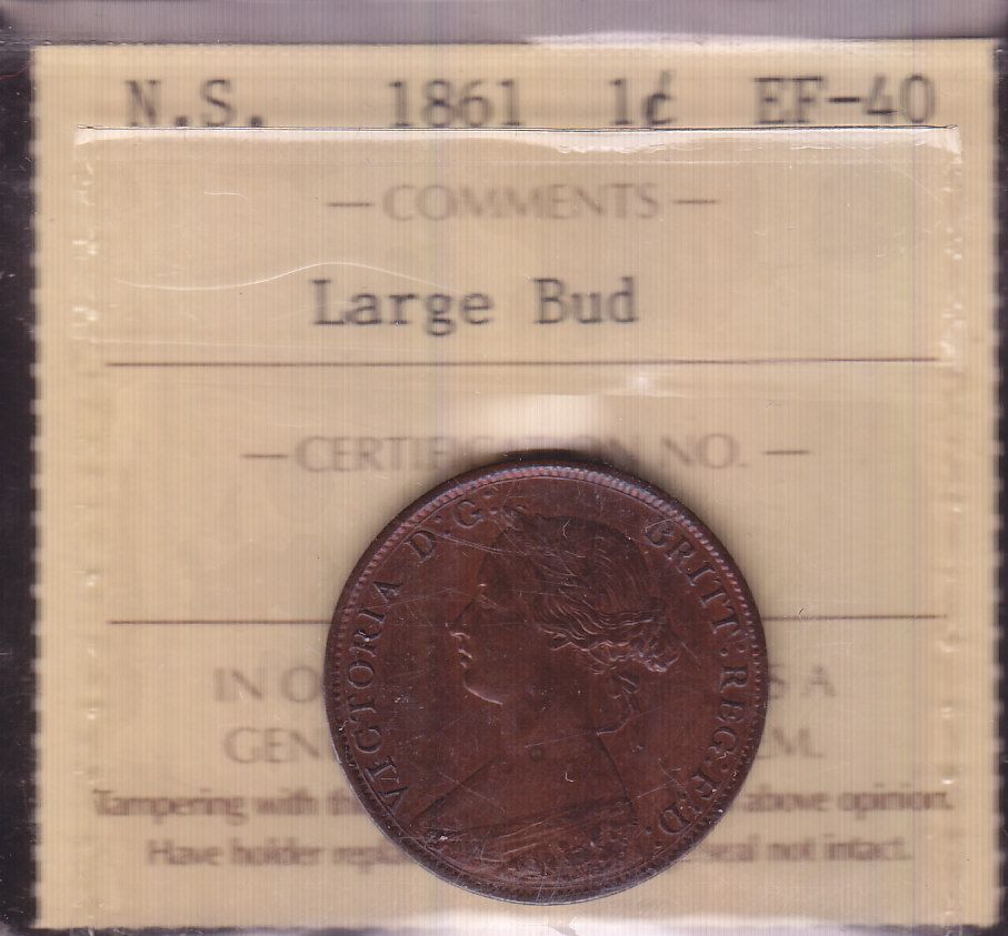 1861 Nova Scotia One Cent - Large Bud, ICCS EF-40.