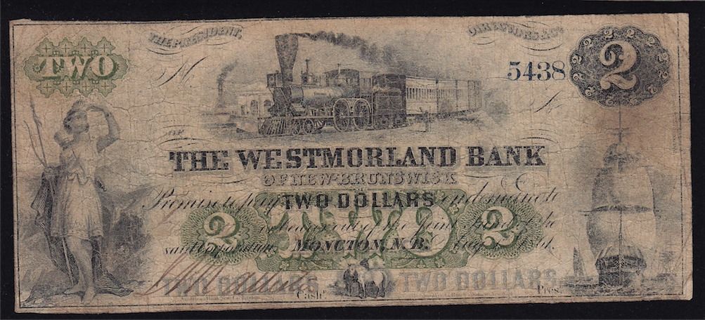 1861 Westmorland Bank $2 - CH 800-12-04 Fine Condition. S/N:5438/A.