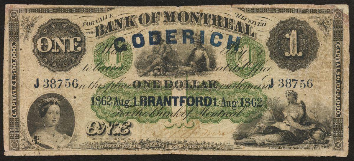 CH 505-32-02 Fine Condition. Goderich Overprint, Brantford Branch. S/N J38756. *
