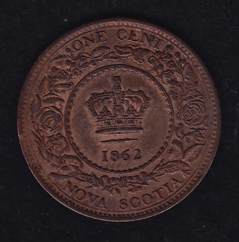 1862 Nova Scotia One Cent. Nice AU with some lustre. Key Date Coin.