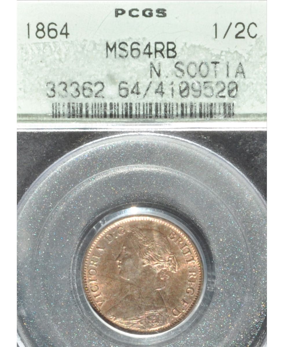 1864 Nova Scotia ½ Cent - PCGS MS-64, Red and Brown.