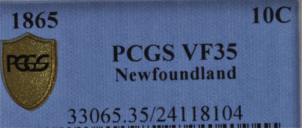 1865 Newfoundland Ten Cent - PCGS VF35.