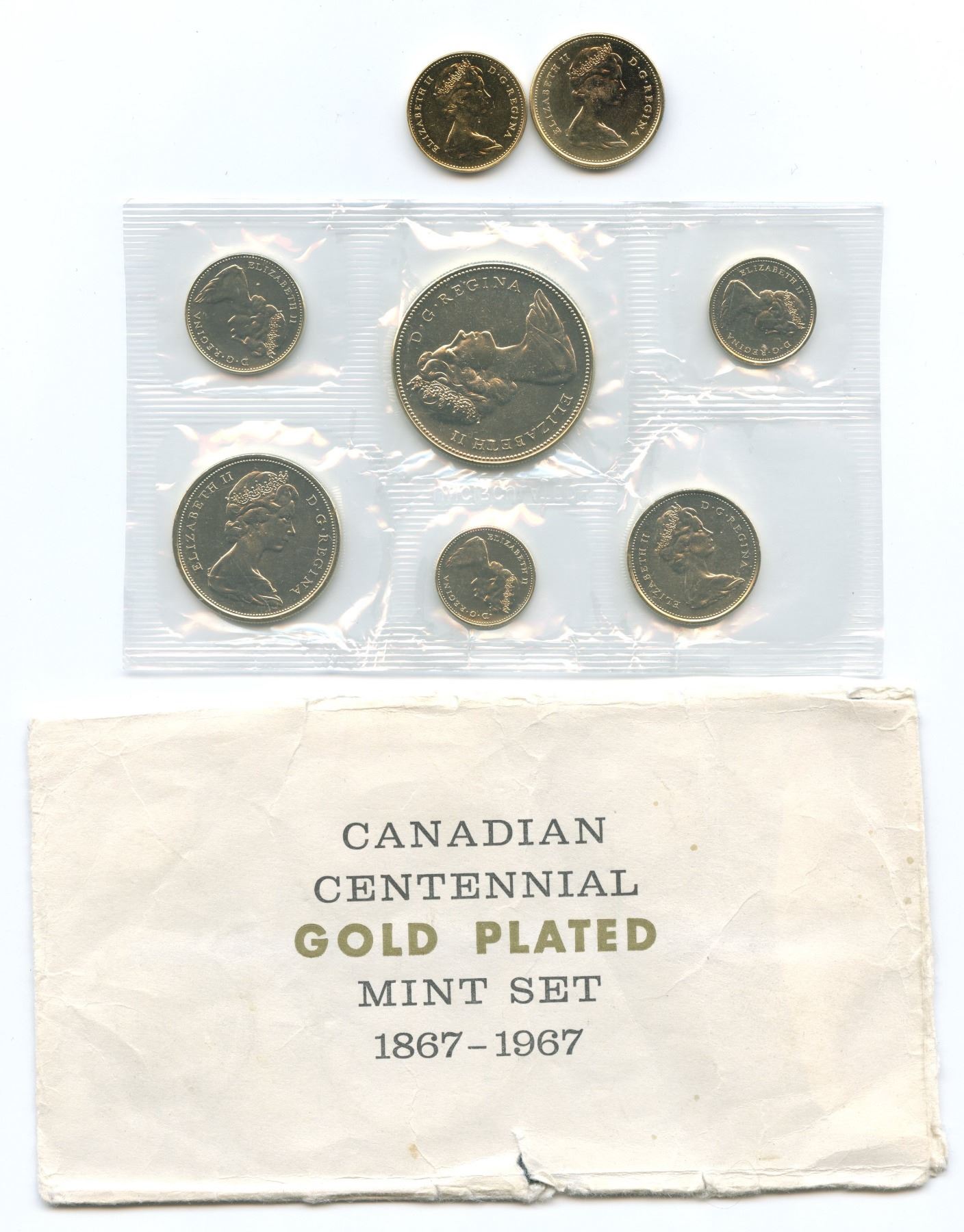 In original pliofilm packing, along with additional gold-plated 5c & 25c (This set has sold for over $600 in another auction in 2025).