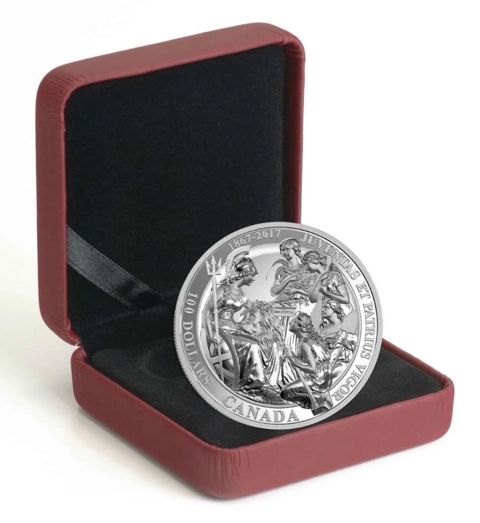 First low mintage medal in the important historical pieces commemorating Canadian Confederation. This medal features a historical landmark along the path of Canadian history: Canadian Confederation of 1867. Only 1000 produced. 10 ozs (311gms) Pure Silver Proof-like Medal (76.25mm diameter). Original MINT CONDITION encapsulated with Certificate Authenticity & case/box.