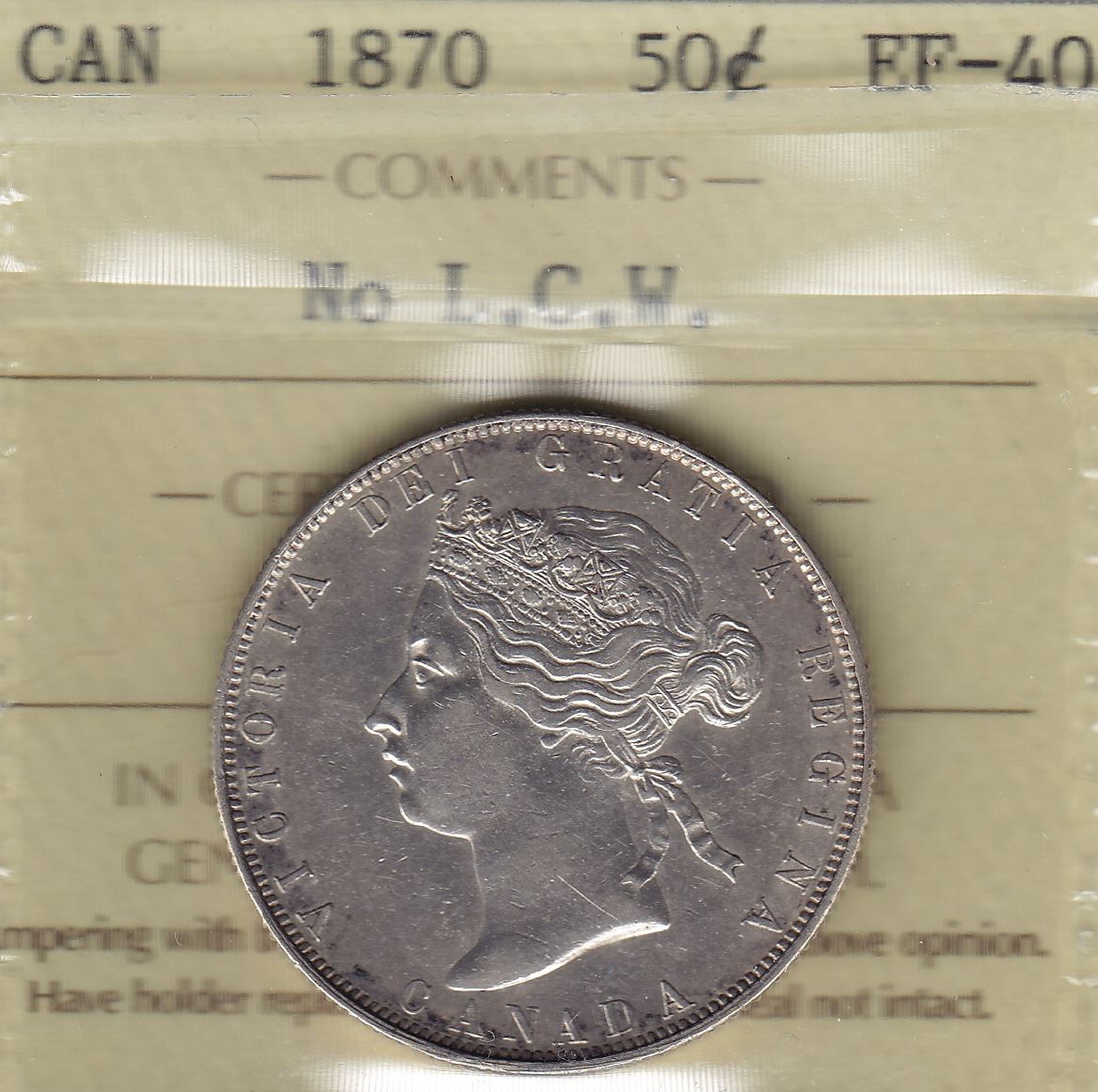 1870 Fifty Cent ICCS EF-40, No LCW.