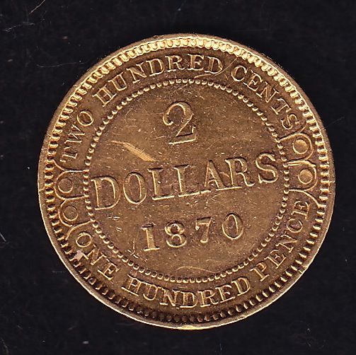 1870 Newfoundland $2 Gold - EF/AU, scratch.