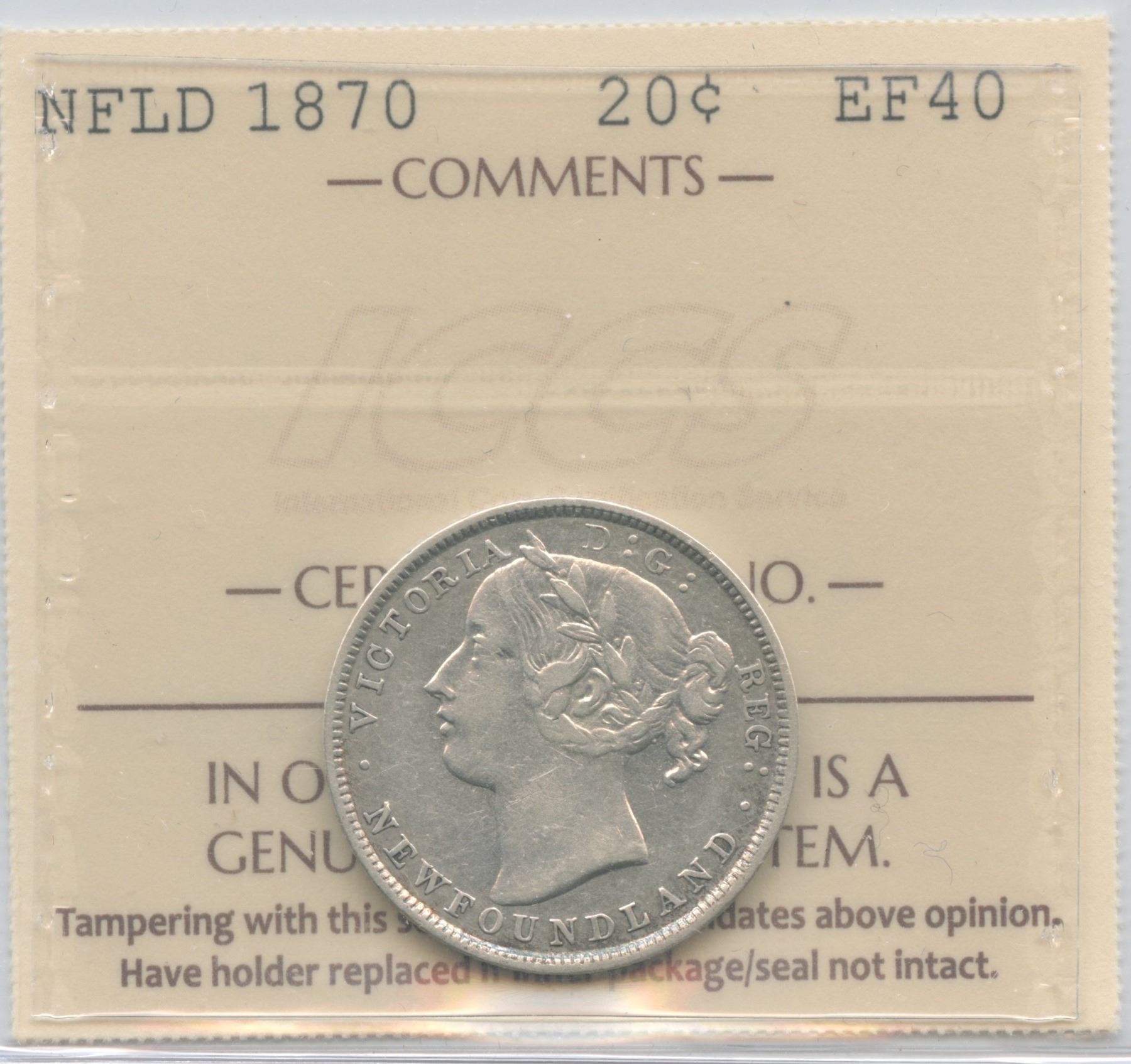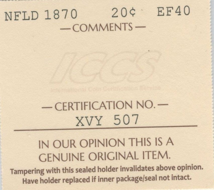 1870 Newfoundland Twenty Cents